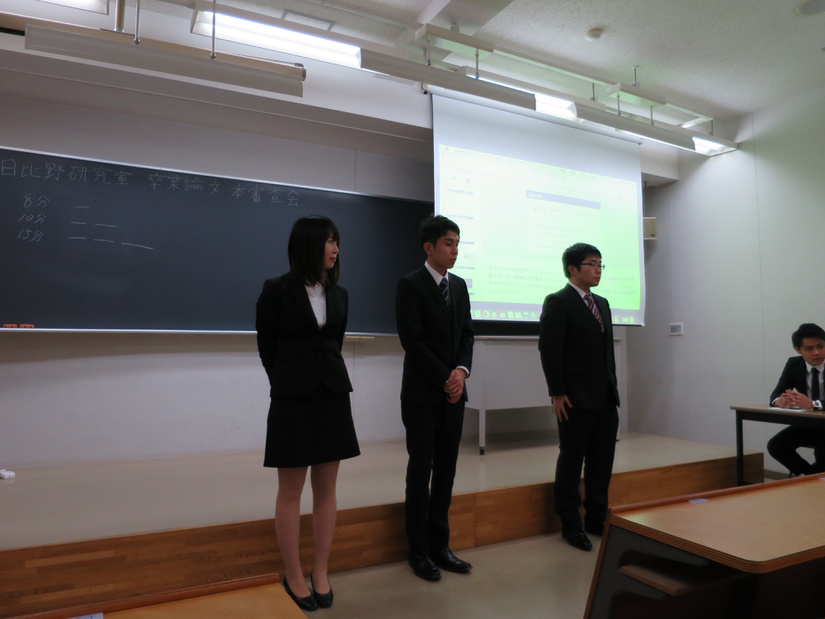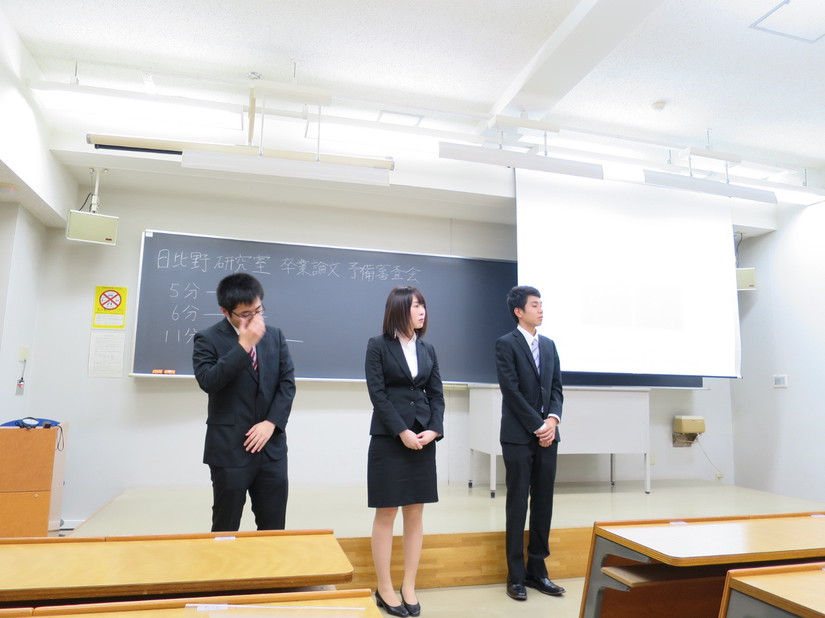 今年度の4年生3名(澤口、鈴木、吉田)が予備審査を受けました。