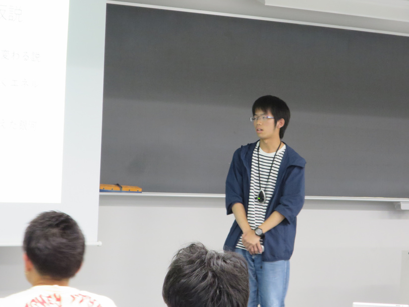 今年度は3年生の中西君が発表しました。タイトルは「超高エネルギー宇宙線の観測」でした。